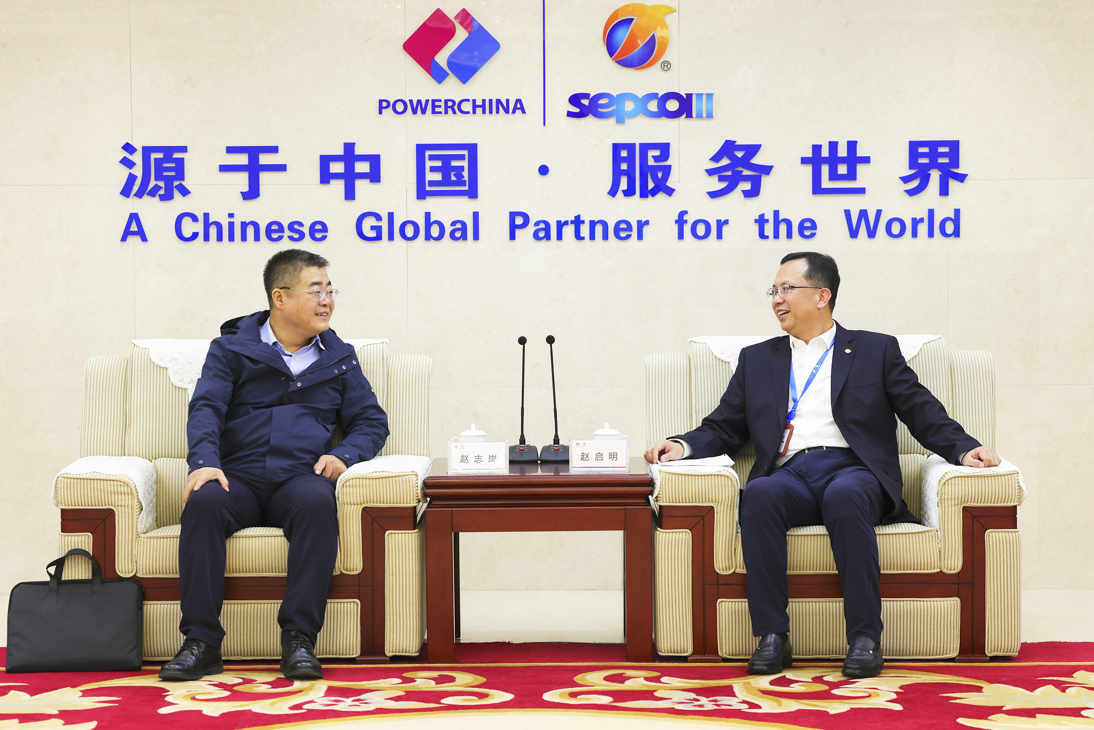 趙啟明與中國中原對外工程有限公司黨委書記、董事長王永革...